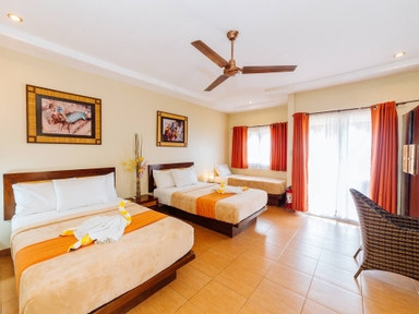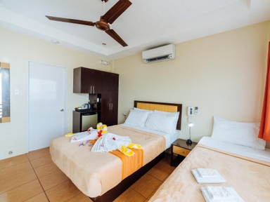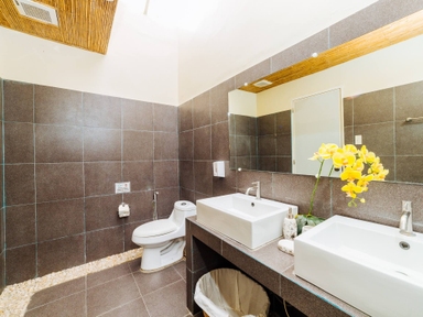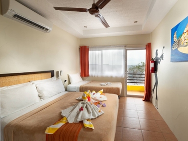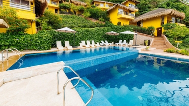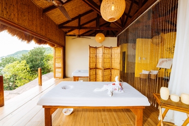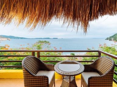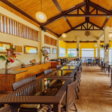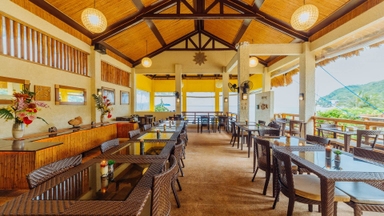 Buceo Anilao Beach & Dive Resort is prachtig gelegen tegen een heuvel. Of je nou de gordijnen van je kamer openslaat, baantjes trekt in het zwembad of een drankje drinkt aan de bar, het uitzicht over de zee is overal schitterend. Het merendeel van de 17 felgele kamers beschikken over een terras, vanwaar je ook geniet van het weidse uitzicht.