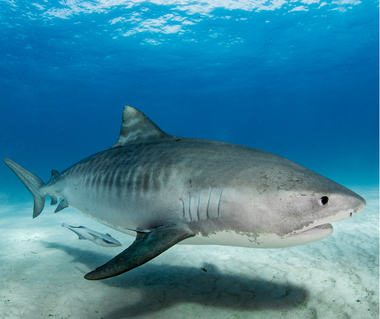 De tijgerhaai dankt zijn naam aan de donkere strepen op zijn rug. Bij jonge dieren zijn deze strepen duidelijk, bij oudere vervagen ze langzaam. Het is een van de grootste haaien ter wereld. Volwassen tijgerhaaien kunnen meer dan zes meter (!) lang worden en tot 800 kilo wegen. Ze leven in tropische en subtropische zeeën over de hele wereld.