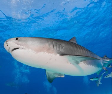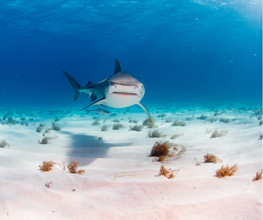 Tiger Beach is misschien wel de beroemdste plek ter wereld om tijgerhaaien te ontmoeten. Hier zwemmen ze vaak in groepen, soms wel vijf of meer tegelijk. Omdat ze gewend zijn aan duikers, kun je ze rustig van dichtbij bekijken. Voor onderwaterfotografen is dit een droomlocatie. Het water is er helder en blauw, waardoor je prachtige beelden krijgt.