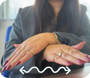 Spreid je vingers wijd uit en wiebel ze zachtjes heen en weer, alsof het de armen van een zeester zijn.
