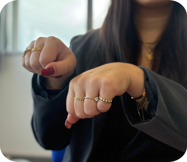 Je vouwt je handen in elkaar en draait je duimen in ronde cirkels, alsof het vinnen zijn die bewegen.