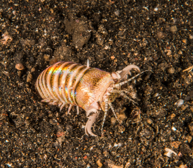Een mini-inktvisje van vaak maar een paar centimeter groot. Hij kan van kleur en patroon veranderen en verstopt zich graag in schelpen of tussen het zand. Door zijn grappige manier van bewegen is het een van de leukste macrodieren om te vinden.