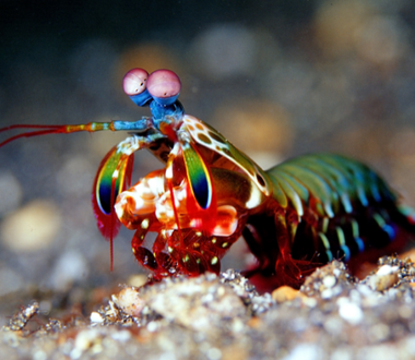 Deze garnaal is iets groter dan de meeste macrodieren, maar mag zeker niet ontbreken in de lijst. Hij staat bekend om zijn felle kleuren en zijn razendsnelle stoot waarmee hij schelpen of krabben openbreekt. Sommige soorten worden tot 30 cm lang. Je vindt ze vaak in een holletje of lopend over het zand. Een indrukwekkend dier dat je niet snel vergeet.