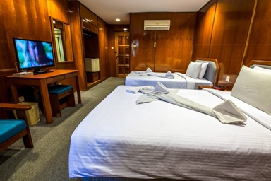 De 86 kamers zijn voorzien van airconditioning, douche, toilet, tv en telefoon, twee queen size bedden en een privé balkon.
