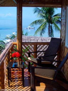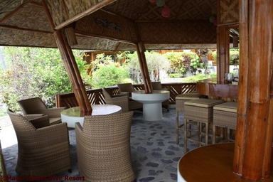 De bar geeft een prachtig uitzicht over zee en serveert het heerlijk Filipijnse San Miguel bier en tropische cocktails, maar ook lekkere verse fruit-shakes. Er bevinden zich diverse loungehoeken in het resort, waar je lekker kunt ontspannen, een boekje lezen, koffie drinken of genieten van een cocktail.