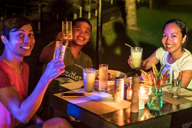 Of je nu ontspannen wilt dineren aan de zwembadbar na een dag duiken, genieten van een fles wijn aan de privéstrandtafel, of culinair wilt worden verwend in restaurant Dahon, het kan allemaal. Bij de zwembadbar vind je sappen, frisdranken, koffie, wijnen, bieren en cocktails. En als je na een dag avonturen liever in alle rust wilt genieten, bieden ze maaltijdservice op je kamer. Zo kun je heerlijk ontspannen in je appartement of penthouse, nagenietend van de indrukken van Dumaguete.