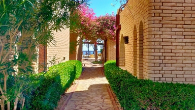Dahab is bekend om haar kleurrijke koraalriffen, uitgestrekt over zo`n 30 km. langs de kustlijn. Het is omgeven door een prachtig panorama van hoge bergen, kleine oases met palmen en andere woestijn planten.