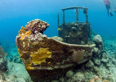 De beroemde sleepboot is maar een paar meter van de kust aangespoeld op een perfecte locatie voor duikers en snorkelaars. Overgroeid met buisvormige sponzen en koraal en een thuis voor veel gekleurde rifvissen. Majestueuze blauwe papegaaivissen en geelstaarten bewaken deze duik locatie.