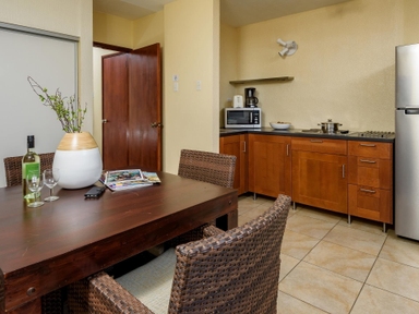 De 1 kamer appartementen zijn voorzien van dezelfde faciliteiten als de standaard kamers maar hebben tevens een kitchenette met 4 kookplaten, magnetron, koelkast, koffiezetapparaat en toaster.