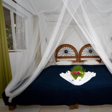 Ook de appartementen zijn gelegen in de tropische tuin en bieden een uitzicht over de weelderige tuin. Alle appartementen zijn voorzien van een volledig uitgeruste keuken met koelkast, magnetron en koffiezetapparaat. Daarnaast beschikken de appartementen over 2 eenpersoonsbedden, een televisie, kluis en eigen badkamer met douche en toilet. In alle appartementen zijn ook wifi, airconditioning en een klamboe beschikbaar.