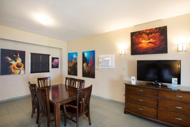 De watertemperatuur rond het Sunset House ligt gemiddeld rond de 27° graden Celsius. Het zicht reikt gemiddeld verder als 30 meter. U vindt er een van ’s werelds meest diverse onderwater taferelen. De kans op ontmoetingen met schildpadden, grote alen en (met een beetje geluk zelfs) manta’s zijn vrij groot! Ook zijn er diverse wrakken te vinden, zoals het wrak van Nichloson and Amphitrite, een bronzen zeemeermin met een lengte van ruim 2,6 meter. Zij wacht op een begroeting van u! Een ander wrak wat u kunt bezoeken is het wrak van Bolboa. De onderwaterwereld rond Sunset House leent zich uitstekend voor het beoefenen van onderwaterfotografie!