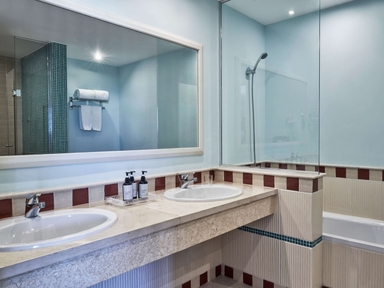 De standaardkamers, geschikt voor één of twee personen, zijn comfortabel ingericht. Je vindt er alle handige dingen zoals een telefoon, airco, televisie, en als je zin hebt, kun je zelfs tegen een klein bedrag gebruikmaken van het internet. Er zijn ook koffie- en theefaciliteiten, maar dat is nog niet alles - er is zelfs een minibar (wel tegen extra kosten) en een kluisje voor je spullen. De badkamer heeft een bad of douche, een toilet en zelfs een föhn. Wat echt leuk is, is dat alle kamers een balkon of terras hebben, dus je kunt lekker buiten zitten en van het uitzicht genieten.