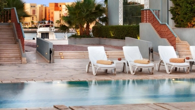Fanadir is gelegen op loopafstand van Mangroovy Beach, zeer populair onder de kitesurfers. De 54 kamers van dit boetiek hotel zijn geinspireerd op de Arabische architectuur en sfeer. Alle kamers hebben een eigen balkon en een prachtig zicht op de jachthaven of het zwembad. De heldere blauwe tinten creëren een rustige en gemoedelijke sfeer. Door de 2 spiegels op de gevel van het hotel is er vanuit het zwembad een prachtig zicht op de luxueze jachthaven.