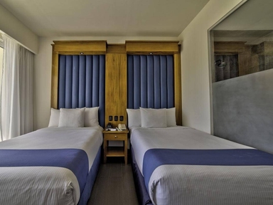 Voor degenen die meer ruimte nodig hebben, is er de Deluxe Dubbele kamer met twee grote bedden. Het kleurenschema en het balkon zijn hetzelfde als in de King Deluxe, maar sommige kamers hebben zelfs een aansluitende kingsize kamer. Perfect voor maximaal 2 volwassenen en 2 kids jonger dan 12 jaar. Ook hier kun je de tuin bewonderen vanaf je balkon.