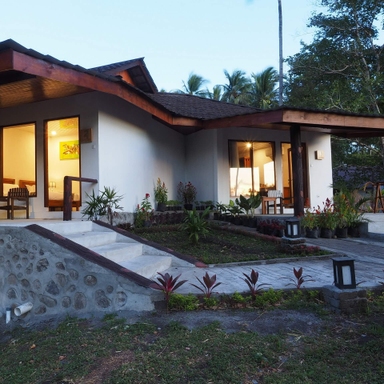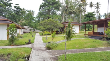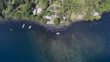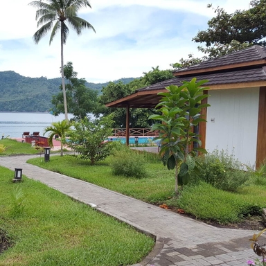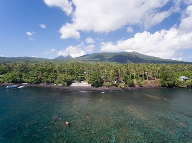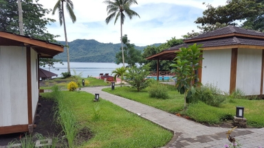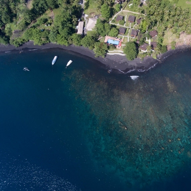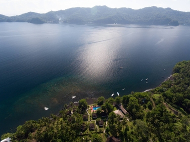 Het Dive into Lembeh Resort is gelegen in een mooie baai met de prachtige duikstek Hairball als huisrif en het beschikt over privé bungalows met zeezicht.