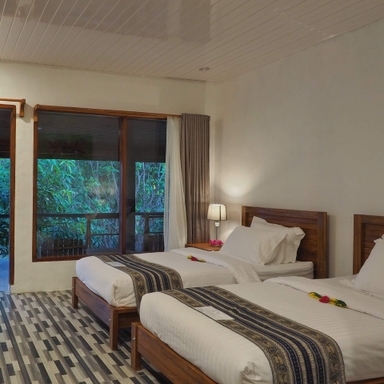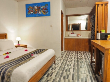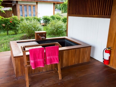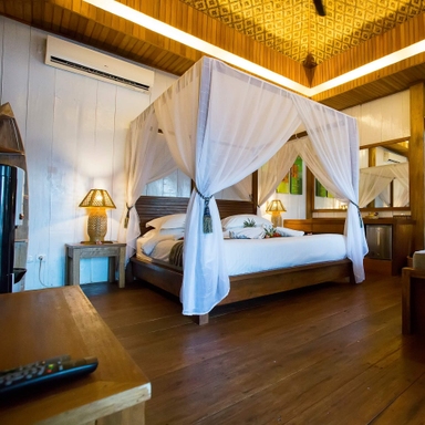 De 9 bungalows beschikken allemaal over drinkwater-, koffie- en thee faciliteiten. Ook is er warm water beschikbaar, afkomstig uit een (5 liter) dispenser. Daarnaast zijn de bungalows uitgerust met satelliet-tv, airconditioning, een plafondventilator, minibar en een kluisje. In de Japanse Onsen op je veranda kunt je aan het eind van de dag heerlijk ontspannen, of na een adrenaline volle duik lekker opwarmen.