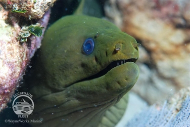 Half Moon Wall is nog zo’n uitzonderlijke duikstek, die nu is opgenomen het Half Moon Caye Nationaal Monument op Lighthouse. De riffen hier zijn spectaculair en gevarieerd, met plotselinge veranderingen in bodemtype en groeven in enorme koraalophopingen. Veel van deze groeven zijn vrij smal, maar voor een duiker groot genoeg om door af te zakken naar de zandbodem. De groeven hebben uitgesproken overhangen, die plaatselijke samensmelten tot tunnels, bekend als Grover's grottos. Er is groot en klein leven in overvloed op de Half Moon riffen. Alen, schelpen, roggen, bot, heremietkreeften en tilefish verstoppen zich in de zandvlaktes achter de riffen op de muur. Razorfish, toadfish en een verscheidenheid aan rifvissen zwermen door de canyons, terwijl grote pelagische soorten als Manta's, spotted eagle rays en schildpadden frequent voor komen. Zelfs haaien en grote zwarte baarzen brengen af en toe een bezoek. Op een diepte van ongeveer 5 meter bevindt zich een grote zandvlakte die op het eerste gezicht lijkt totaal oninteressant lijkt. Bij nader inzien blijkt dat duizenden mysterieuze zandspierinkjes hier hun gracieuze, slanke lichamen uit een gat in de zandplaat steken. Deze dieren zijn zeer schuw en zodra duikers naderen zie je de alen zich in een opeenvolgende beweging terugtrekken in hun beschermende schuilplaatsen.