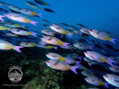 Het Aquarium daarentegen is een makkie en een geweldige plek voor fotografen. Het is er schoon en netjes, met een verscheidenheid aan kleine koralen en een overvloed aan kleine rifvissen waaronder bijna alle soorten grunt. Grote koraalformaties beginnen op een diepte van 11m en tal van tunnels, bogen, hoeken en doorgangen maken dit tot een fascinerende duikstek.