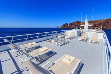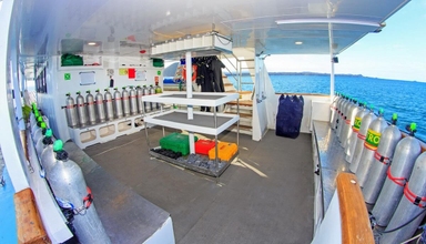 Op het duikdek is ruimte voor 16 duikers en de duikgidsen. Voor iedere duiker is er een klein opbergkastje onder de bank. Voor camera’s en video apparatuur, staat er een grote tafel in het midden van het duikdek waar de accessoires en dergelijke tijdens de duik kunnen worden opgeborgen. Aan de zijkant langs de trap zijn 2 douches om af te spoelen na een duik.