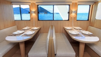 De hutten op het benedendek beschikken over patrijspoorten met uitzicht over de oceaan. Elke hut beschikt over een en-suite badkamer, airconditioning, voldoende opslagruimte en comfortabele bedden.
