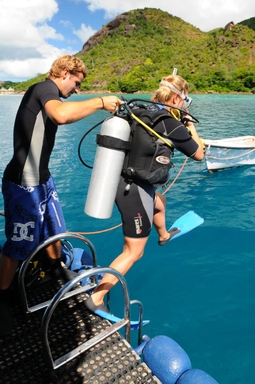 Dag 3 Gedurende het ochtendgloren vaart u uit naar Shark bank, gelegen tussen Mahé en Silhouette Island. Dit granietplateau is de thuishaven van grote scholen tropische vis, maar ook haaisoorten zoals de White tip en (met een beetje geluk, gedurende het juiste seizoen) walvishaaien. Kijk rustig rond, terwijl grijze stingrays u passeren: u zult u ogen uitkijken! De tweede duik van de dag staat gepland op de duikstek Brissare Rock, die bekend staat om haar diversiteit. Onder meer papegaai-, dokters- en angel vissen passeren de revue, evenals vele fuseliers en diverse baars- en sweetlip soorten. Aan het eind van de middag komt u aan bij La Digue, waar gedineerd en overnacht wordt.
