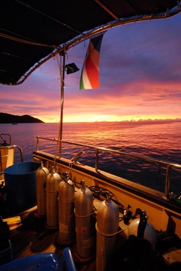 Dag 1 U komt aan op de luchthaven van Mahé, waar u instapt bij de transfer richting de boot. De bemanning staat klaar om u te verwelkomen! ’s Middags vertrekt u in Noordelijke richting naar de Noordoost punt van Beau Vallon Bay. Vanaf het kleine granieteiland Ilot wuiven de palmbomen u vriendelijk toe en het onderwaterleven is des te uitbundiger! Uw eerste duik vindt hier plaats. Na de duik wordt koers gezet richting de baai van Beau Vallon, waar u kunt genieten van de prachtige zonsondergang.