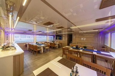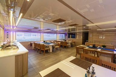 • Bars: 2 x bars (1 in salon & 1 op het dek) met frisdranken, mineraal water, bier en wijn.