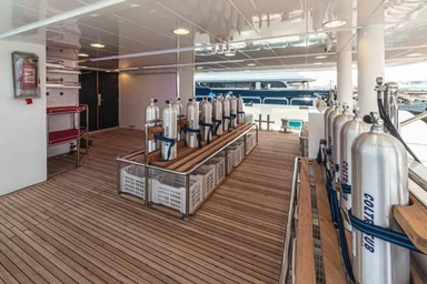 • Duikdek: met douches, groot duikplatform & persoonlijke uitrusting kastjes