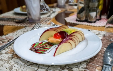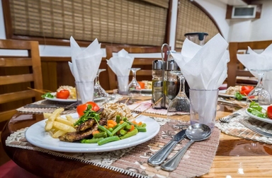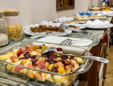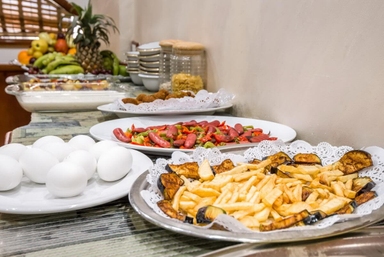 Aparte dinerruimte voor 3 maaltijden per dag in open buffet vorm.