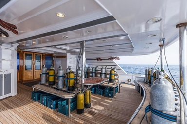 Duikdek met warme douches, groot duikplatform & privé uitrusting kastjes