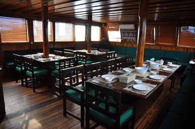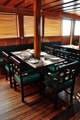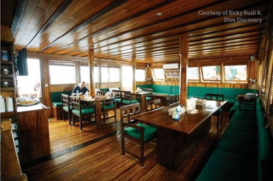Dek 4 heeft binnen een eetruimte en een lounge gedeelte met TV/DVD. Voorop de boot is een met canvas overspannen loungedek met ligbedden, hier kunt u heerlijk genieten van het uitzicht en de gemaakte duiken.