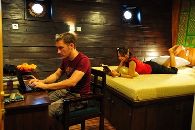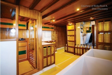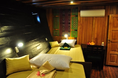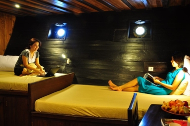 Op het 2e dek is er naast de 6 gastenhutten ook nog een crew cabin en op de 3e dek zijn er 2 gastenhutten, een crew cabin en ook de keuken en het “duikstation” te vinden.