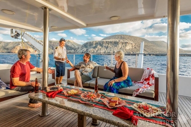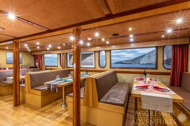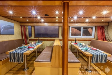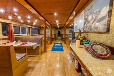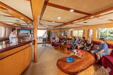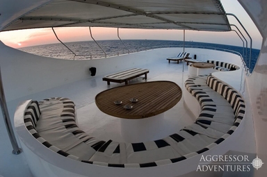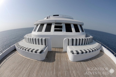 Het bovendek is ‘the place to be’ om te relaxen, een filmpje te kijken of samen na te praten over de afgelopen duiken. Wil je van de zon genieten, dan is het grote zonnedek op het hoogste dek helemaal geweldig. Hier kun je zowel in de zon als in de schaduw ontspannen en het schitterende uitzicht en mooie zonsondergangen aanschouwen.
