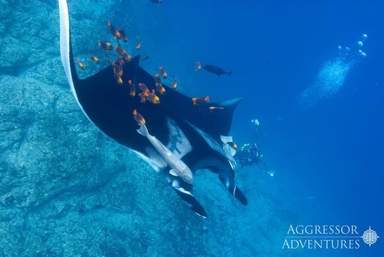 Mede dankzij de in het onderwaterlandschap gegrafeerde lavastroomsporen en de actieve vulkanen, beschikt de archipel over een ware “Lost World-uitstraling”, die volgens velen direct uit Jurassic Park zou kunnen komen. Daadwerkelijke dinosauriërs leven hier niet meer, maar de manta’s en anderen gigantische zeebewoners die hier met enige regelmaat gespot worden, komen behoorlijk in de buurt! Vrijwel alle trips starten met een bezoek aan de manta’s. Halverwege de trip ga je te water op stekken waar regelmatig ontmoetingen met onder meer dolfijnen, haaien en humpback whales plaatsvinden. Er leven verschillende haaisoorten rond de archipel. De 10 meest voorkomende soorten zijn de geschulpte hamerhaai (deze komt voornamelijk voor in scholen en is iets kleiner dan zijn grote broer), de hamerhaai, galapagoshaai, white-tip rifhaai, silver-tip haai, tijgerhaai, oceanic white-tip haai, walvishaai, schemerhaai en voshaai.