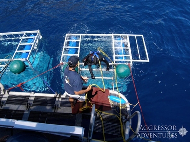 Naast de traditionele surface cages (kooien vrijwel direct aan het wateroppervlak) wordt er gebruik gemaakt van submersible cages. Deze minder gebruikte kooien dalen af naar een diepte van 9 meter, waardoor u zich direct in de natuurlijke leefomgeving van de haaien bevindt. Tenslotte is er op het platvorm ook een zogenaamd Bait Deck, die het best omschreven kan worden als een, door middel van een stalen constructie beschermde, korte stijger. Vanaf hier worden de haaien veelal gelokt met een in jutte zak omwikkelde tonijn. Er wordt géén gebruik gemaakt van vleierij zoals bloed; de tonijn is voldoende om de haaien te laten weten dat er duikers gearriveerd zijn op het platvorm.