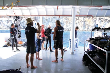 Aan het eind van de dag keert u terug naar de salon. Hier wordt geanalyseerd met welke haaien eerder de dag ontmoetingen hebben plaatsgevonden. Stelt u zich eens voor dat u een nieuwe haai ontmoet hebt! Natuurlijk mag u dan meedenken over de naam van het nieuwe lid van de Guadalupe haaienpopulatie!