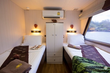 De slaapplaatsen aan boord zijn goed geregeld: 16 gasten kunnen verblijven in 8 comfortabele cabines. Elke hut heeft z'n eigen badkamer en grote ramen voor wat daglicht. Met een suite en verschillende opties voor twin- of tweepersoonsbedden, is er voor ieder wat wils aan boord van de Thailand Aggressor.