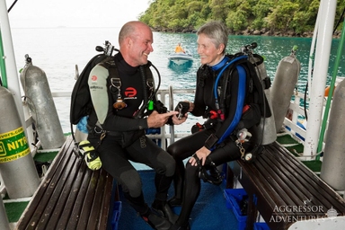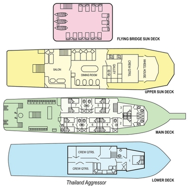 Klaar voor een waanzinnige duikervaring met de Thailand Aggressor? Dit luxe duikjacht, dat tussen november en mei op liveaboard trips gaat naar de Noord- en Zuid-Andaman Zee vanaf Phuket, en tussen mei en november naar de West-Indonesische wateren van Banda Aceh, biedt alle comfort die je maar kunt wensen.