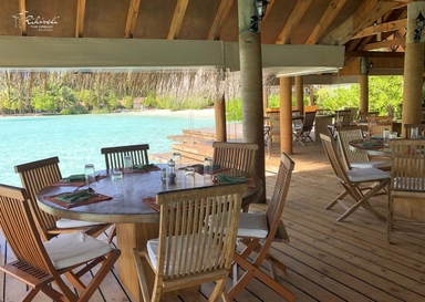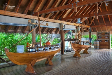 Het prachtige over-the-sea restaurant fungeert als hart en ziel van het resort. Het is dé plek voor het maken van nieuwe vrienden en gezelligheid met uw reisgenoten, of het maken van een praatje met het vriendelijke personeel. U kunt plaatsnemen aan een van de grote, gemeenschappelijke tafels of kiezen voor meer intimiteit door middel van een privé tafeltje: ideaal voor een romantische avond!