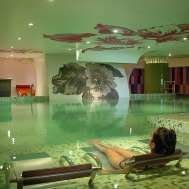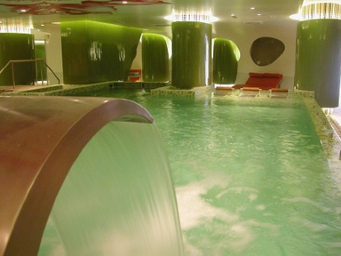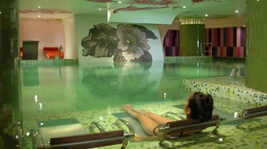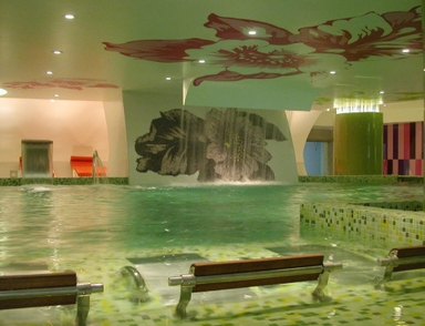 Het is gebouwd in een u-vorm rond de grote zoutwaterzwembaden en beschikt over veel marmer met fraaie beelden en planten. Dit zeer gezellige hotel met subtropische begroeiing en watervallen is zeer goed onderhouden en beschikt over lavatuinen en een groot zwembadterras. Tevens heeft het een grote lounge met receptie, een recreatiezaal en een groot restaurant en nabij de zwembaden ligt een buitenbar.