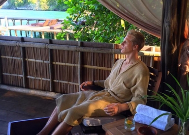 De lounge zelf biedt een aangename ambiance, met comfortabele zitplaatsen en een ontspannen sfeer. Je kunt hier heerlijk achterover leunen, genieten van de zachte zeebries en jezelf verliezen in het betoverende uitzicht op de lagune. Het is de perfecte plek om met medereizigers te socializen, ervaringen te delen of gewoon even tot rust te komen na een dag vol avontuurlijke ontdekkingen.