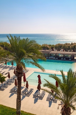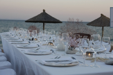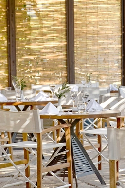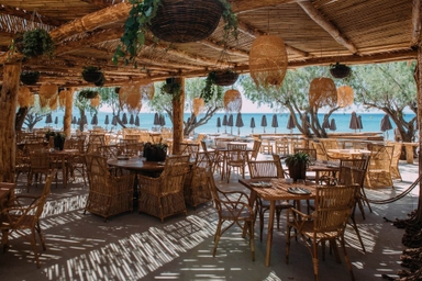 Bij Asterias Seaside Beach Bar kun je een scala aan heerlijke gerechten proeven, waaronder geliefde Italiaanse favorieten en lichte snacks, allemaal geserveerd in een relaxte boho-chique strandsetting.