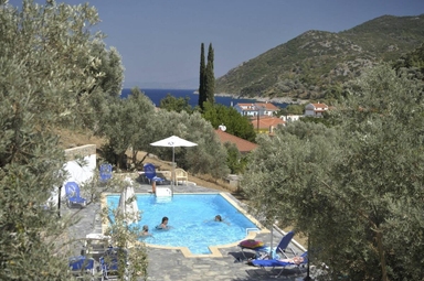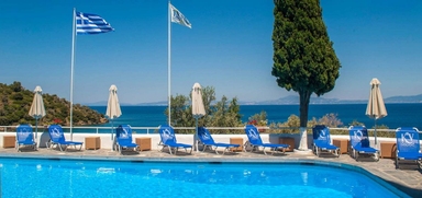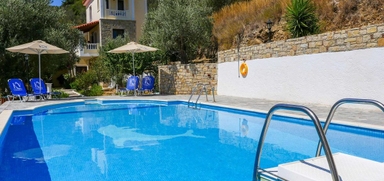 Iets verderop ligt het zwembad van het resort, omringt door ligbedden en parasols. Het zwembad heeft een speciaal deel voor kinderen dat door een rand afgezonderd is van de rest van het zwembad. Naast het zwembad is de bar en taverne gevestigd. Hier bestel je heerlijk Griekse gerechten, warme dranken, lekkere ijsjes en verfrissende cocktails.