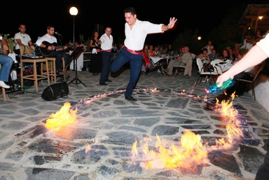 In het restaurant geniet je dagelijks van een ontbijt- en dinerbuffet. Met de traditionele Griekse gerechten en vele lokale producten proef je echt iets van Griekenland. Heb je liever iets internationaler? Dat kan ook er worden vaak ook welbekende internationale gerechten toegevoegd aan het buffet. In de ochtend maak je vooral kennis met de lokale producten en fruit van het seizoen.