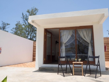 Geniet vanaf je eigen terras van een adembenemend uitzicht. Elke lodge is ingericht met een modern Scandinavische stijl welke veel ruimte en rust uitstraalt. Doordat de lodges op loopafstand van het strand staan, wordt je heerlijk wakker met het geluid van de golven op de achtergrond. De ligbedden op het terras bieden een geweldige plek om te ontspannen.